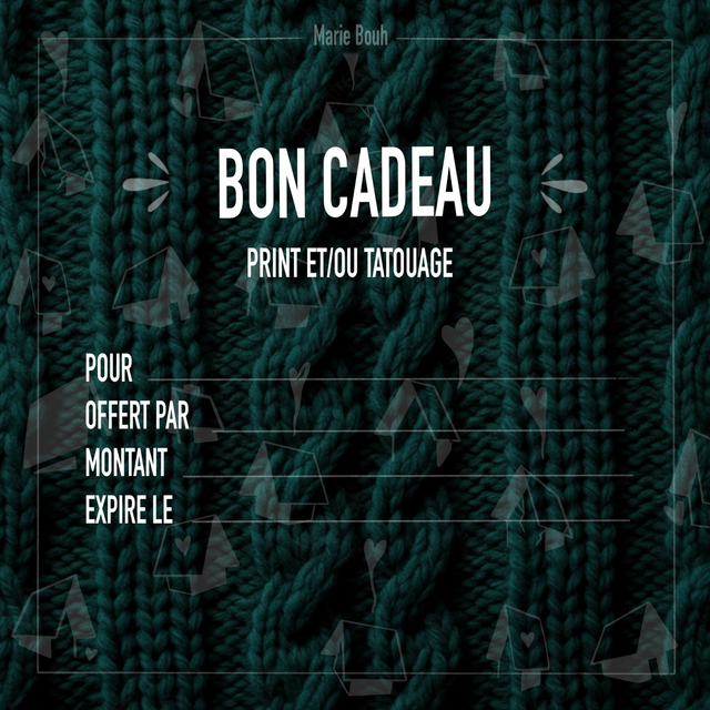Pour Noël, un anniversaire, une occasion spéciale ou juste pour faire plaisir, tu peux offrir un bon cadeau à quelqu’un qui aimerait adopter un de mes tatouages !